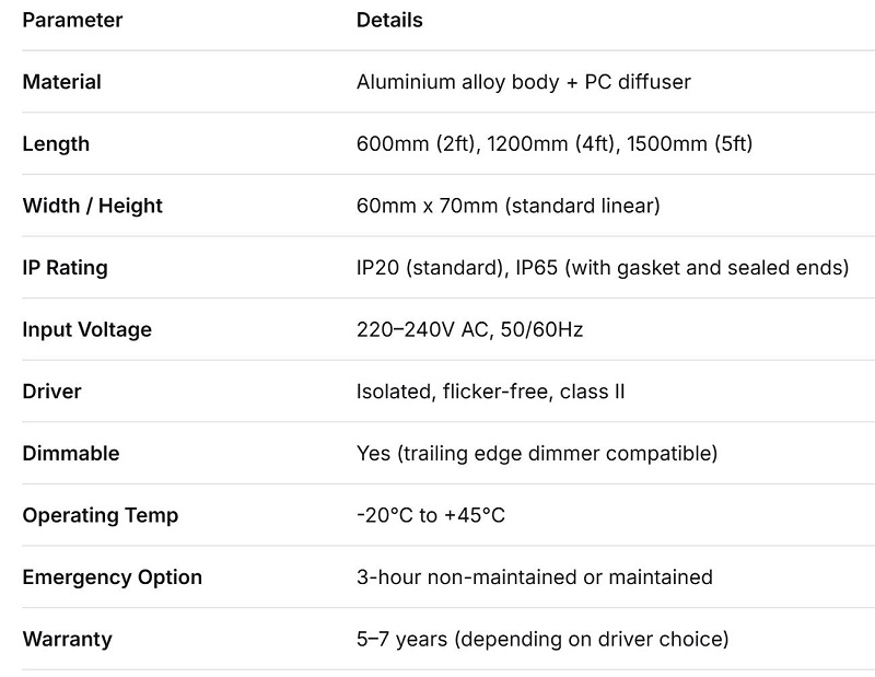 Să înlăturăm pufurile de marketing. Când vorbesc cu un manager de facilități sau cu un electrician al proiectelor, acestea sunt specificațiile despre care întreabă mai întâi. Am alcătuit o listă rapidă a caracteristicilor de bază, urmată de un tabel detaliat pentru tocilari (mă refer la asta ca un compliment).